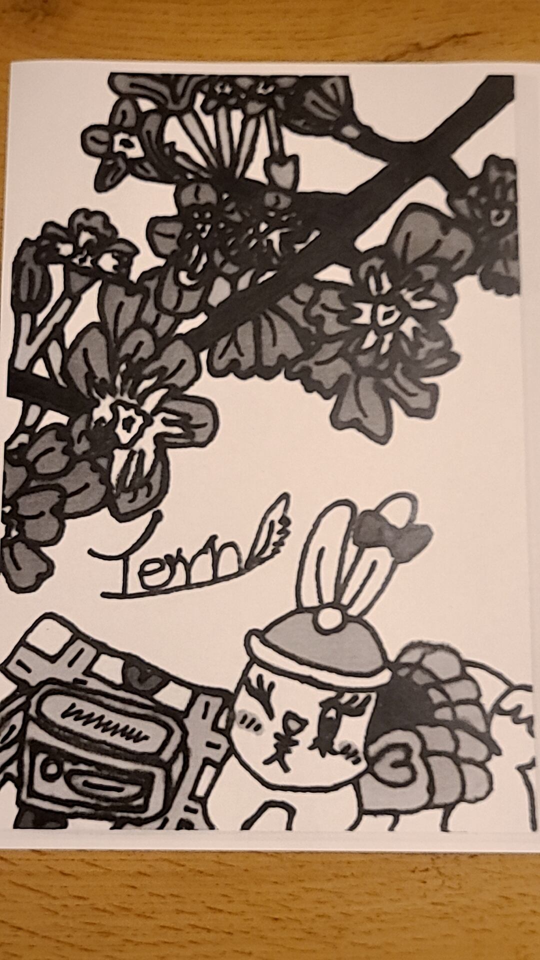 寒緋桜と白兎の春の訪れ【印刷:白黒イラストシート:A4サイズ】